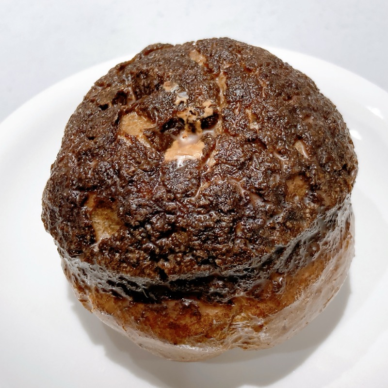ひっくり返してみると、普通のよくあるシュー生地より色味が濃いのでココア風味?